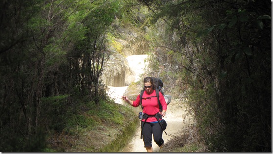 Kim heading down some of the last bit of trail going down on the way to the hut….
